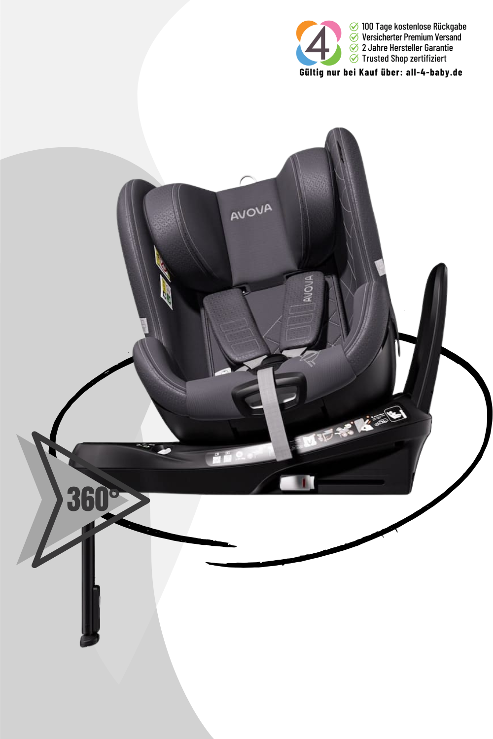 Ich bin der Avova Alera X1, euer zuverlässiger Reisegefährte ab den ersten Monaten bis ins vierte Lebensjahr. Rückwärtsgerichtet begleite ich euer Kind von 61 bis 105 cm, vorwärtsgerichtet ab 76 cm – immer mit bestem Schutz und höchstem Komfort.