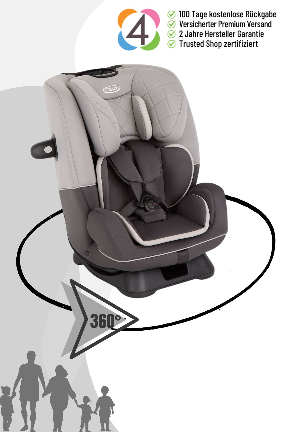 Der Rückwärts- und vorwärtsgerichteter Kindersitz ab Geburt bis 12 Jahre