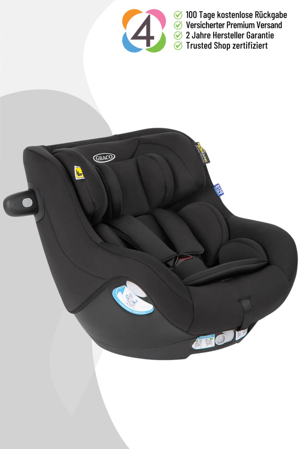 Ich bin der Graco SnugGo™ Reboard Kindersitz und i-Size und R129-zertifiziert für maximale Sicherheit im Auto. Mit meinem integrierten Rückprallbügel und dem Safety Surround™ Seitenaufprallschutz sorge ich für zusätzliche Unfallsicherheit. Dank meiner einfachen und sicheren Installation auf der separat erhältlichen Basisitation Snug Turn mit ISOFIX-Konnektoren und höhenverstellbarem Stützfuß könnt Ihr sicher sein, dass ich fest im Auto verbunden bin. Die Farbindikatoren zeigen Euch, wann ich richtig installiert bin. Mein TrueShield™ Seitenaufprallschutzelement bietet extra Sicherheit während der Fahrt und das 5-Punkt-Gurtsystem wächst automatisch mit Eurem Kind mit und passt sich perfekt an. Dank meines praktischen 360° Drehmechanismus könnt Ihr Euer Kind mühelos herein- und herausheben. Meine Kopfstütze sowie das 5-Punkt-Gurtsystem sind in der Höhe verstellbar. Ich biete verschiedene Neigungspositionen für maximalen Komfort und mit meiner seitlichen Belüftung sorge ich für angenehme Temperaturen während der Fahrt. Zusätzlich verfüge ich über eine Neugeboreneneinlage, eine gepolsterte Kopfstütze und weiche Gurtpolster für extra Komfort. Ihr könnt mich rückwärtsgerichtet ab der Geburt bis ca. 4 Jahre und vorwärtsgerichtet ab mind. 15 Monaten bis ca. 4 Jahre nutzen. Für meine Verwendung benötigt Ihr zwingend die drehbare ISOFIX-Basisstation SnugTurn™ i-Size R129, die separat erhältlich ist.
