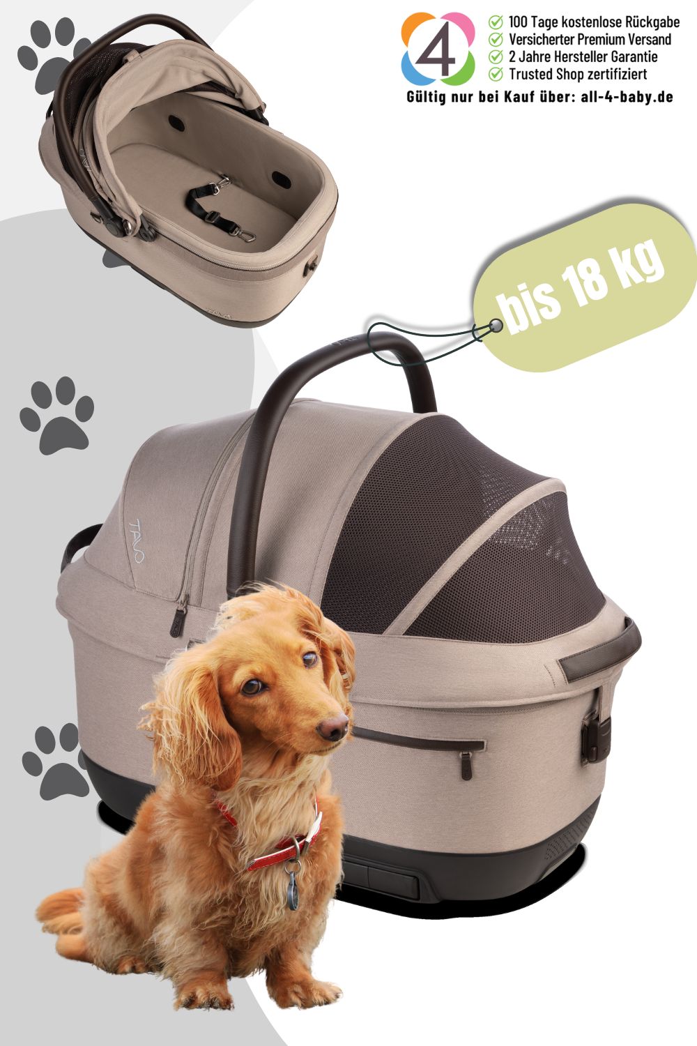 - Geräumiger Transportkorb und stabiles Verdeck als Rückzugsort – ideal zum Einkuscheln