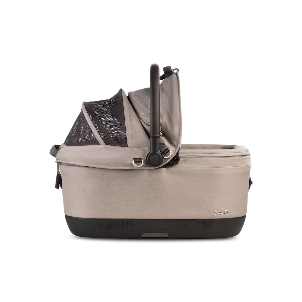 Meine Materialien sind von Natur aus flammresistent, völlig frei von chemischen Zusätzen. Das Verdeck schützt mit UVP 50+ auch an sonnigen Tagen. Zwei wechselbare Sets aus Matratzenbezügen – strapazierfähiger Stoff oder atmungsaktives Mesh – sorgen immer für ein angenehmes Klima. Weich gepolsterte, maschinenwaschbare Matratzen und vegane Lederdetails machen mich besonders komfortabel und edel.