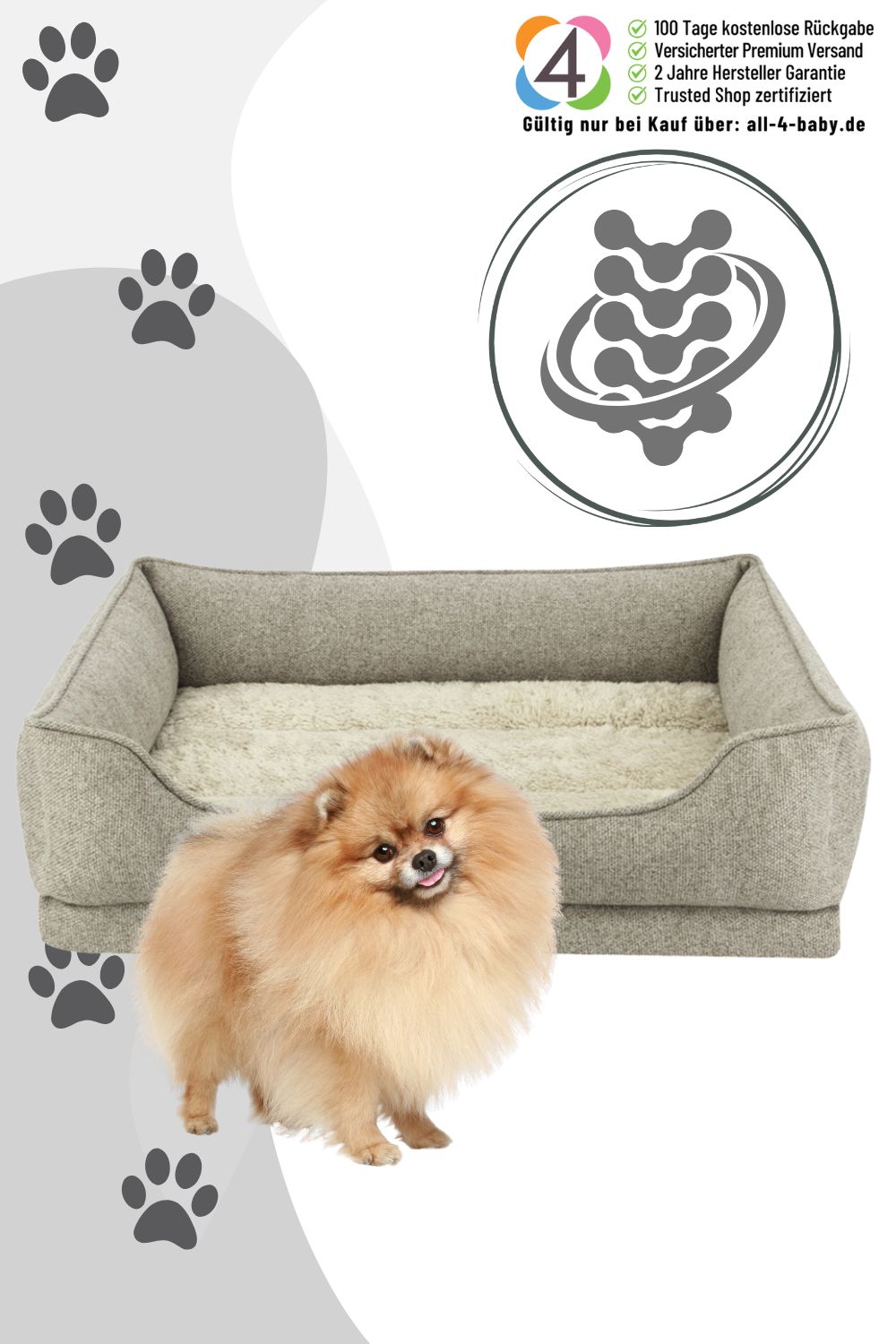 Dank meiner Anti-Rutsch-Unterseite bleibe ich sicher an Ort und Stelle, auch wenn Euer Hund sich häufig dreht oder aufsteht. Wenn Ihr Eurem Vierbeiner nicht einfach nur ein Hundebett, sondern echte Entlastung und Geborgenheit schenken möchtet, bin ich an Eurer Seite – Tag und Nacht.
