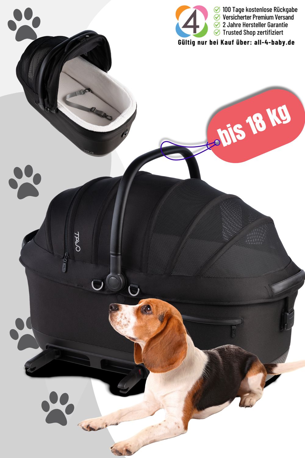 - Für mittlere Haustiere bis 18 kg geeignet