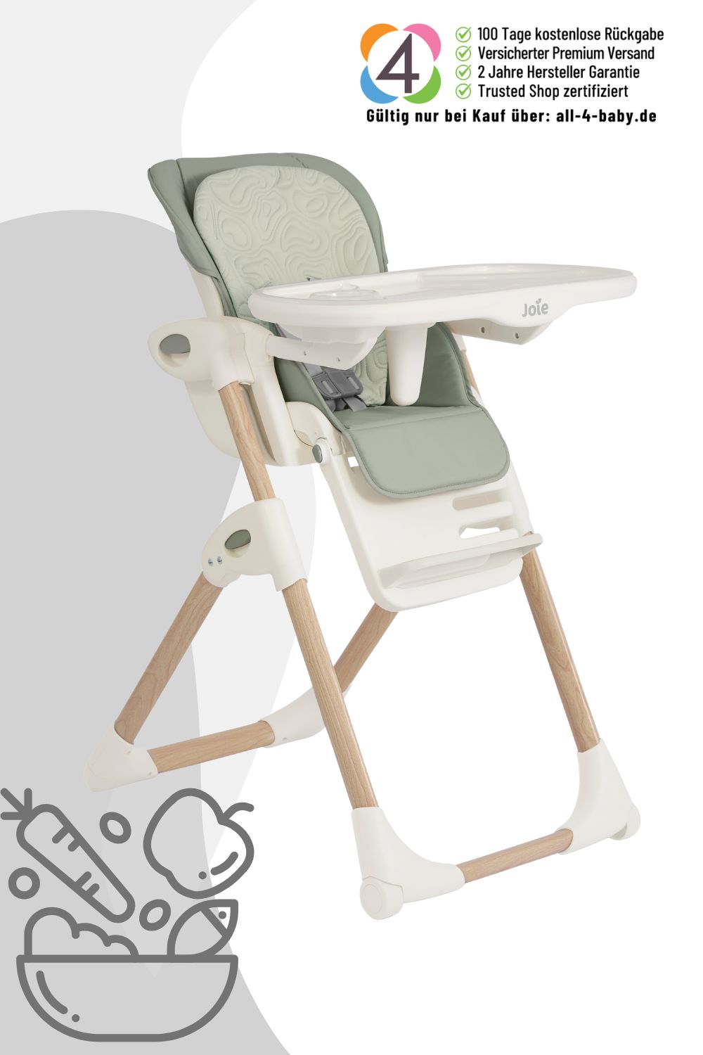 Der Joie Mimzy Recline ist die ideale Lösung für Neugeborene und Kinder bis zu einem Gewicht von 15 kg. Mit durchdachten Funktionen und einem modernen Design sorgt dieser Hochstuhl dafür, dass Euer Kleines bequem und sicher an den gemeinsamen Mahlzeiten teilnehmen kann.