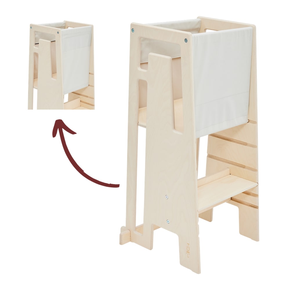 Mit dem Tuki Entdeckertuch macht Ihr den Tuki Lernturm schon ab 9 Monaten sicher und vielseitig einsetzbar. Das Entdeckertuch verschließt alle vier Seiten des Lernturms und verhindert so zuverlässig, dass Euer Kind herausfallen kann. So könnt Ihr gemeinsam in der Küche aktiv werden und die Standfestigkeit sowie motorischen Fähigkeiten Eures Kindes gezielt fördern.