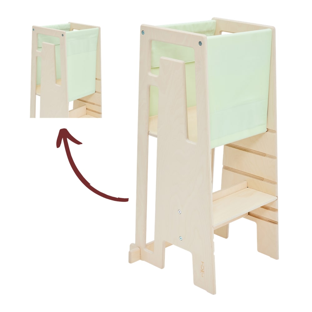 Mit dem Tuki Entdeckertuch macht Ihr den Tuki Lernturm schon ab 9 Monaten sicher und vielseitig einsetzbar. Das Entdeckertuch verschließt alle vier Seiten des Lernturms und verhindert so zuverlässig, dass Euer Kind herausfallen kann. So könnt Ihr gemeinsam in der Küche aktiv werden und die Standfestigkeit sowie motorischen Fähigkeiten Eures Kindes gezielt fördern.