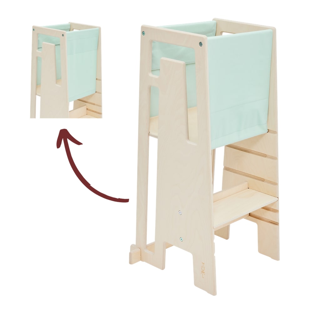 Mit dem Tuki Entdeckertuch macht Ihr den Tuki Lernturm schon ab 9 Monaten sicher und vielseitig einsetzbar. Das Entdeckertuch verschließt alle vier Seiten des Lernturms und verhindert so zuverlässig, dass Euer Kind herausfallen kann. So könnt Ihr gemeinsam in der Küche aktiv werden und die Standfestigkeit sowie motorischen Fähigkeiten Eures Kindes gezielt fördern.
