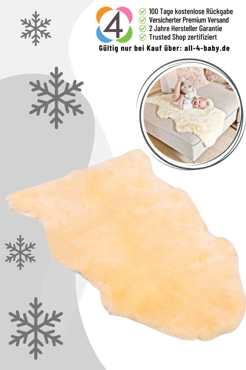 Unser Baby-Lammfell wurde speziell für die Bedürfnisse der Kleinsten entwickelt. Es bietet natürlichen Komfort und Sicherheit, denn es reguliert die Körpertemperatur Eures Babys optimal. Im Winter hält es schön warm, im Sommer sorgt es für eine angenehme Kühlung – so verhindert es Überhitzung und Unterkühlung gleichermaßen. Das vertraute Fell wirkt beruhigend und schafft eine heimelige Atmosphäre, die Eurem Baby Geborgenheit schenkt.