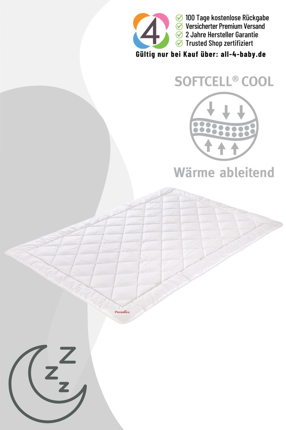 Erholsamer Schlaf beginnt mit dem richtigen Bettklima. Die Paradies Sommerbettdecke Cool Comfort in der Größe 135 x 200 cm ist perfekt für alle, die in warmen Sommernächten Wert auf Leichtigkeit und Frische legen.