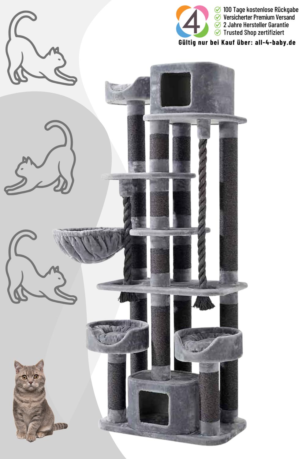 - Stabile Kratzstämme aus Sisal, Durchmesser ca. 11 cm– sturdy sisal scratching posts, diameter approx. 11 cm