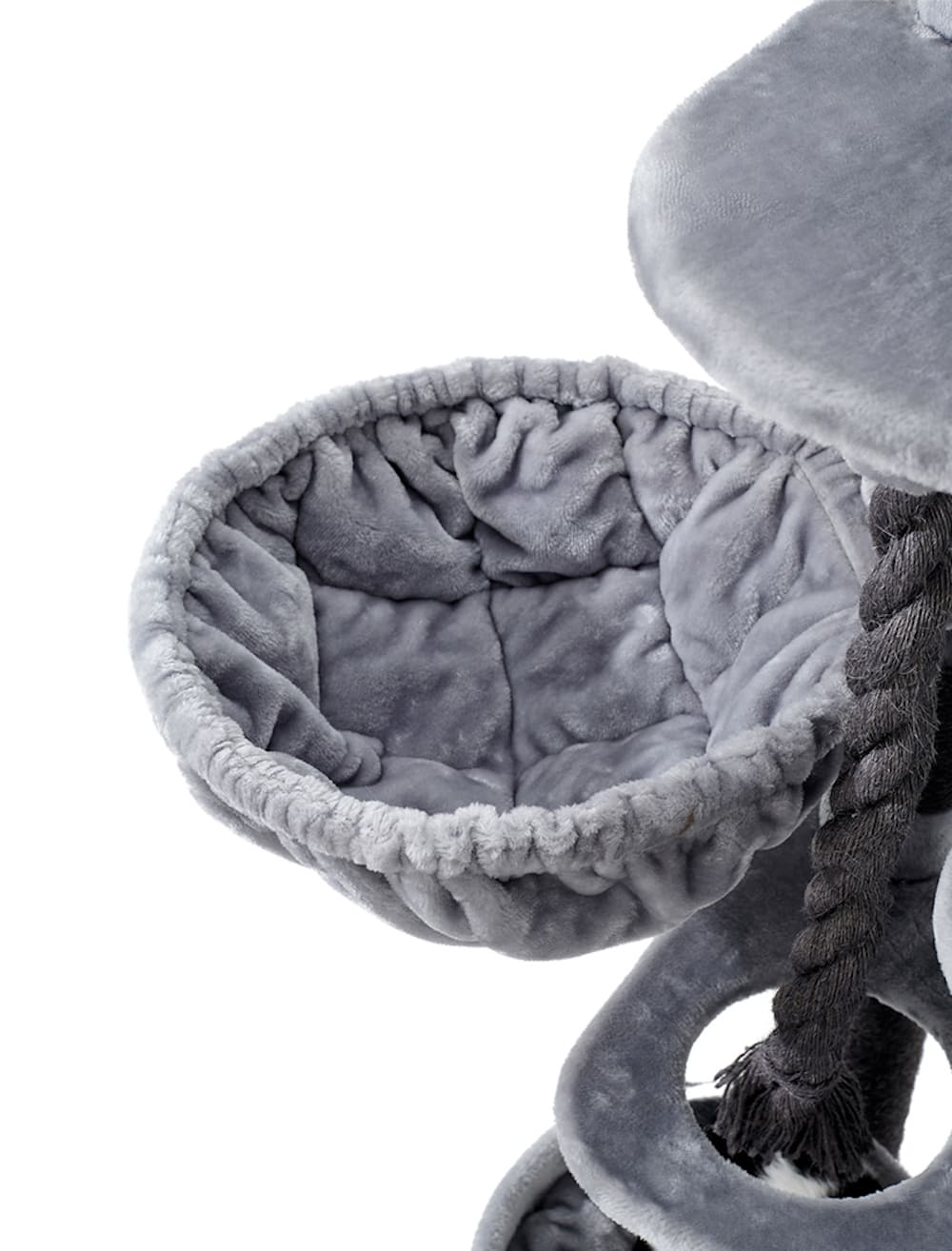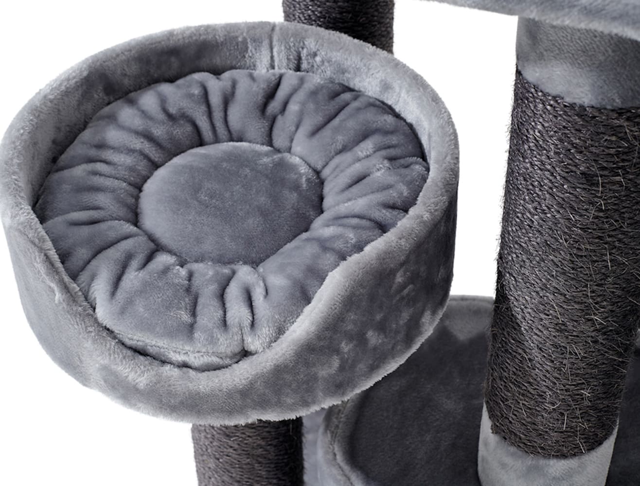 Genießt mit euren Fellnasen zwei gemütliche Höhlen als sichere Rückzugsorte, eine weiche Liegemulde für entspanntes Ruhen sowie mehrere zusätzliche Liegeflächen. Zum Toben sorgen zwei Spielseile in 60 cm und 100 cm Länge für wilden Spaß und Kletterabenteuer.