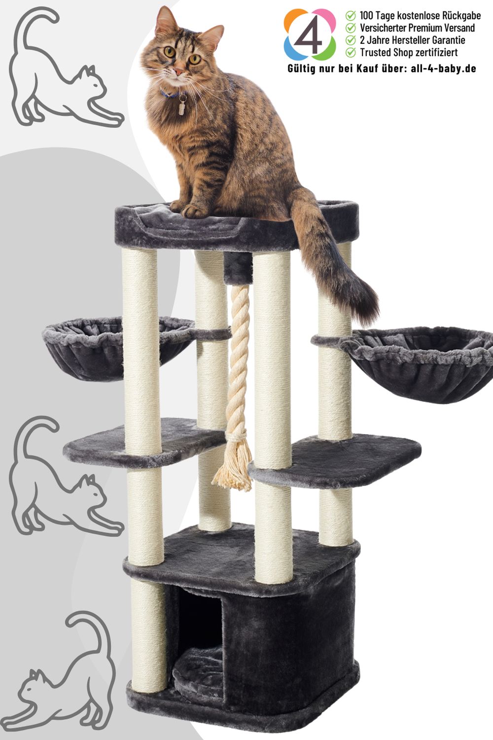 • Stämme komplett mit Sisal ummantelt, ideal zum Krallenwetzen – posts fully wrapped with sisal, ideal for scratching​