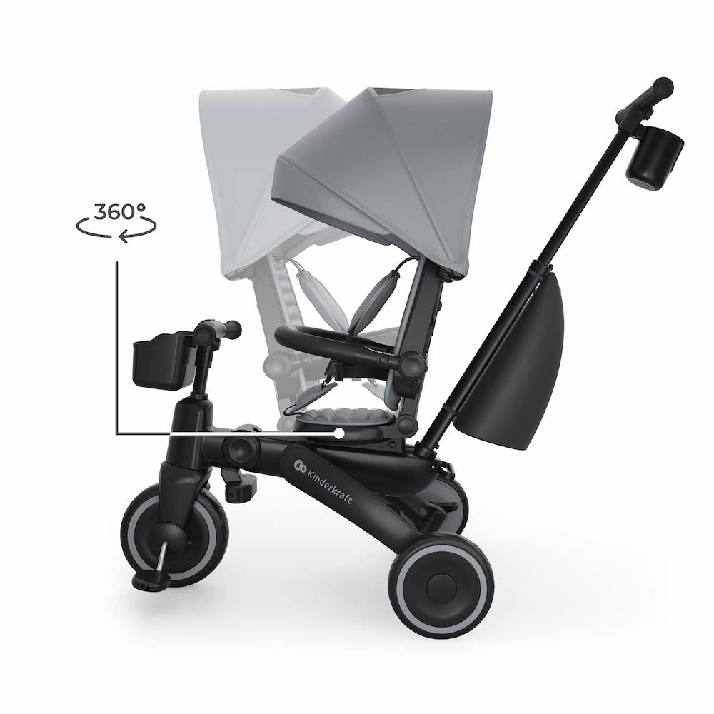 - 360° drehbarer Sitz (CLICK&TWIST-System) – ermöglicht Vorwärts- oder Rückwärtsfahrt mit nur einer Handbewegung