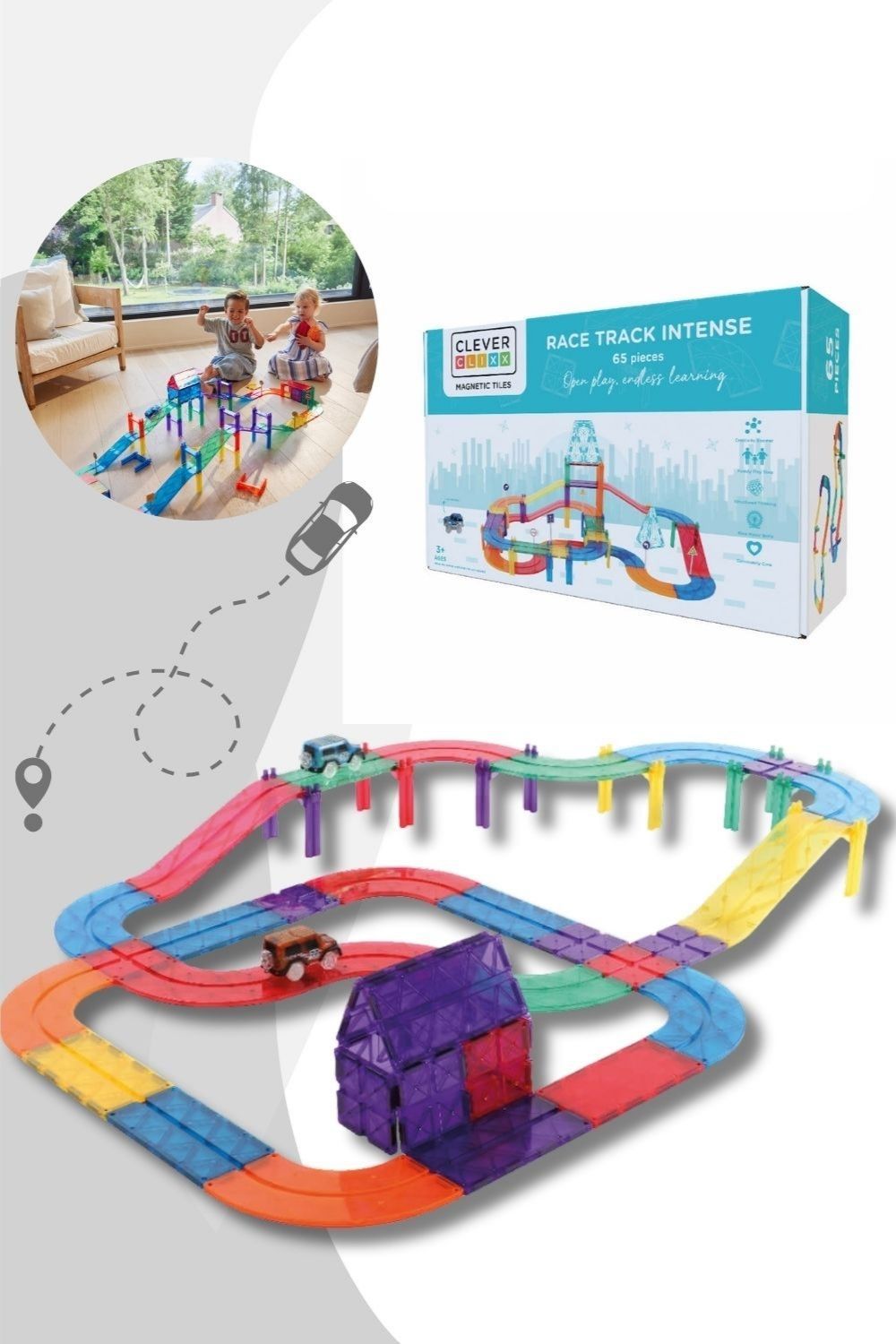 Cleverclixx Race Track Intense / Magnetbaustein Autobahn-Bausatz - 65 Teile