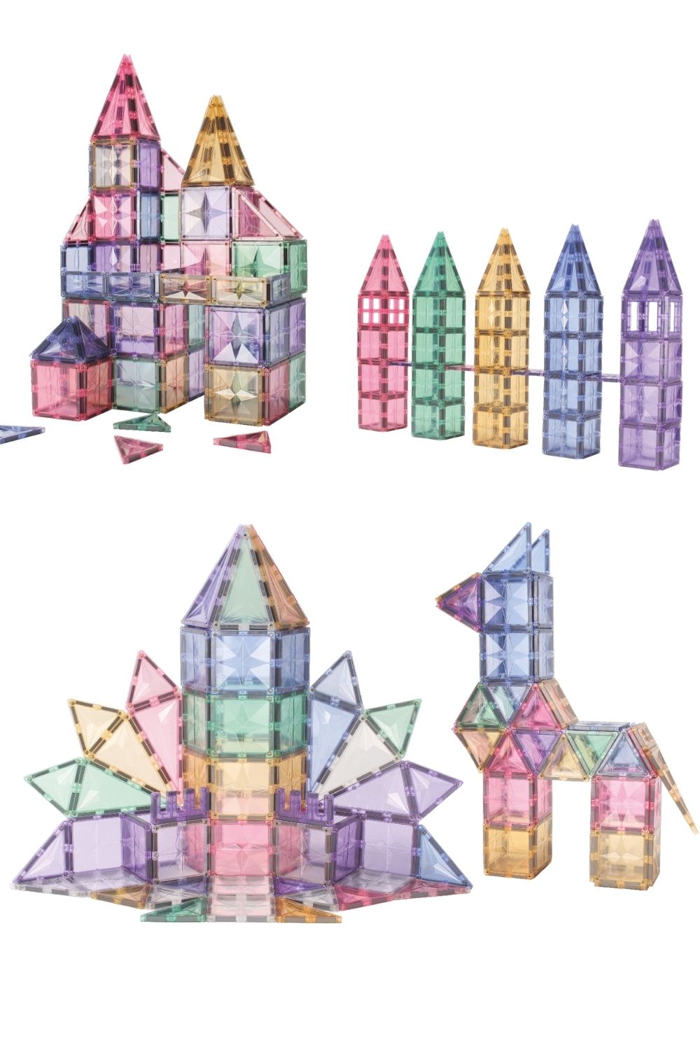• 210 magnetische Bauteile in sanften Pastellfarben – 210 magnetic building pieces in pastel colors