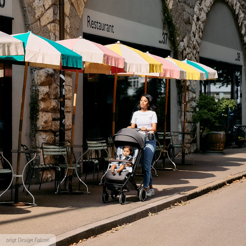 Dank seines kompakten Faltmaßes eignet er sich perfekt als Handgepäck im Flugzeug – die Maße entsprechen den gängigen Handgepäckgrößen, abhängig von Eurer Fluggesellschaft. Ob beim Check-in oder an Bord, der Transport gestaltet sich einfach und unkompliziert. Der Buggy lässt sich bequem mit dem Tragegriff oder dem Schultergurt transportieren, sodass ihr die Hände frei habt für andere Dinge.