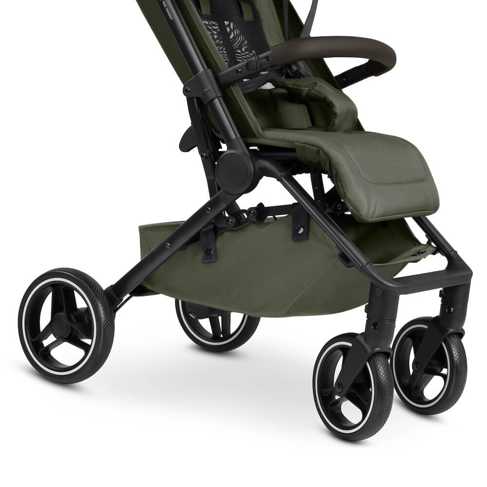 Mit der praktischen Feststellbremse, die direkt am rechten Hinterrad positioniert ist, habt Ihr jederzeit die Kontrolle über den Buggy. Der durchdachte Verzicht auf die Hinterachse sorgt für maximale Beinfreiheit und erhöht den Schiebekomfort – ideal für lange Spaziergänge oder Ausflüge in die Stadt!