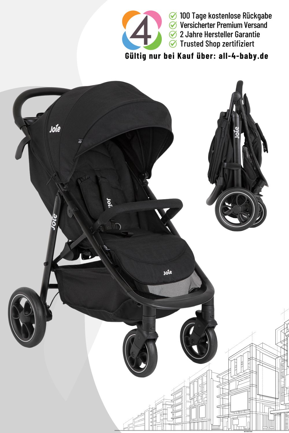 Ob entspannt in der Stadt shoppen oder ein Spaziergang durch den Wald, der Sportwagen nimmt es mit Allem auf. Möglich machen´s die pannensicheren Kunstoff Reifen (EVA-Reifen) sind. Mit seinen schwenk- und feststellbaren Vorderrädern ist er sowas von wendig und da alle vier Räder auch noch einzeln gefedert sind, bringt euren kleinen Entdecker im Wagen nichts aus der Ruhe. Der Joie Litetrax ist so unkompliziert und so praktisch. Er macht alles mit und folgt euch überall hin. Wollt ihr den Joie Litetrax verstauen oder mitnehmen, klappt ihr ihn einfach mit einer Hand zusammen und zieht ihn anschließend wie einen Trolley easy hinter euch her. Perfekt also für jeden Ausflug, ob mit Auto, Bahn, Camper oder zu Fuß.