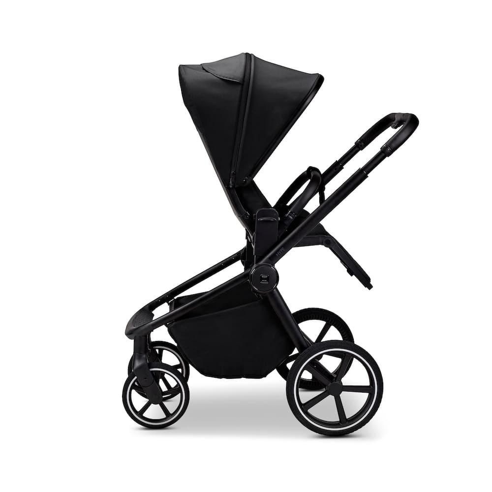 Meine großen Lightweight-Räder mit Federung und Kugellager gleiten ruhig über jeden Untergrund. Dank gelgefüllter Reifen fahrt ihr stoßgedämpft, ganz ohne Plattenrisiko. Mein umsetzbarer Sportsitz wächst mit – nach vorne oder zu euch gerichtet, dreifach in der Höhe verstellbar und mit Komfortpolstern für jedes Abenteuer. Euer Kind kann sitzen, ruhen oder dank flacher Liegeposition entspannt träumen.