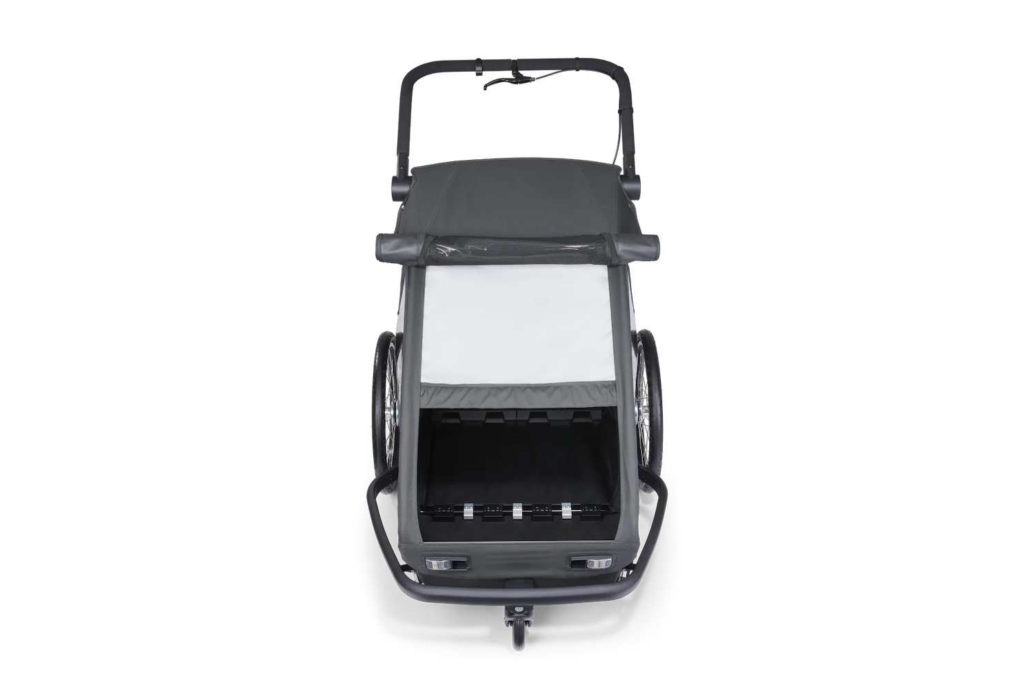 Dank der innovativen Click & Crooz®-Technologie verwandelt sich dieser praktische Anhänger mühelos per Knopfdruck in einen Buggy oder Jogger. Egal, ob Ihr einen entspannten Stadtbummel plant oder mit Euren Kleinen aktiv im Freien unterwegs seid – mit nur einem Handgriff seid Ihr bereit für jedes Abenteuer!