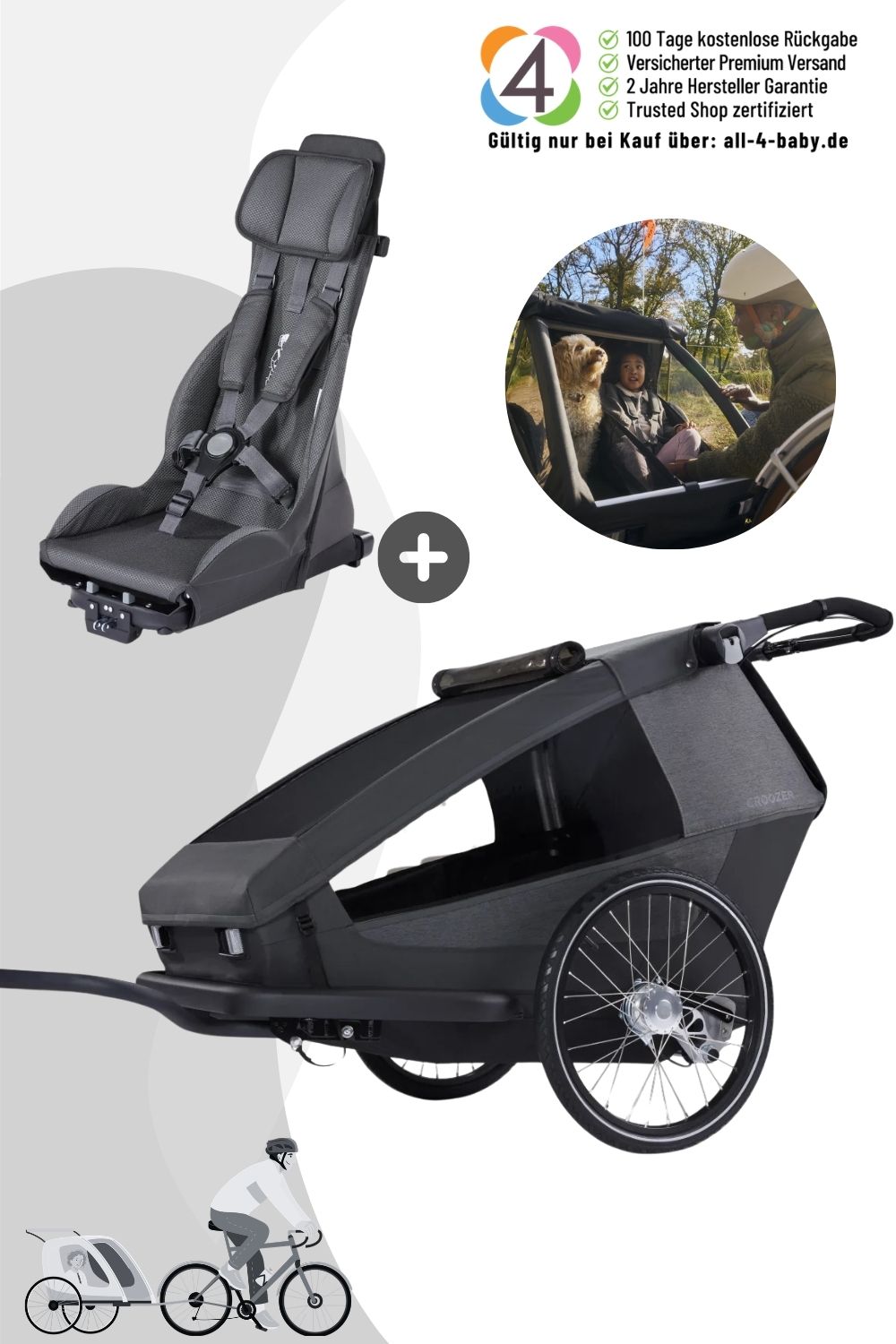 • Croozer Yuuna + 1 Premiumsitz für autofreies Leben mit Kind, Hund, Gepäck - Croozer Yuuna + Premium Seat bundle for car-free life with kids, dogs, luggage