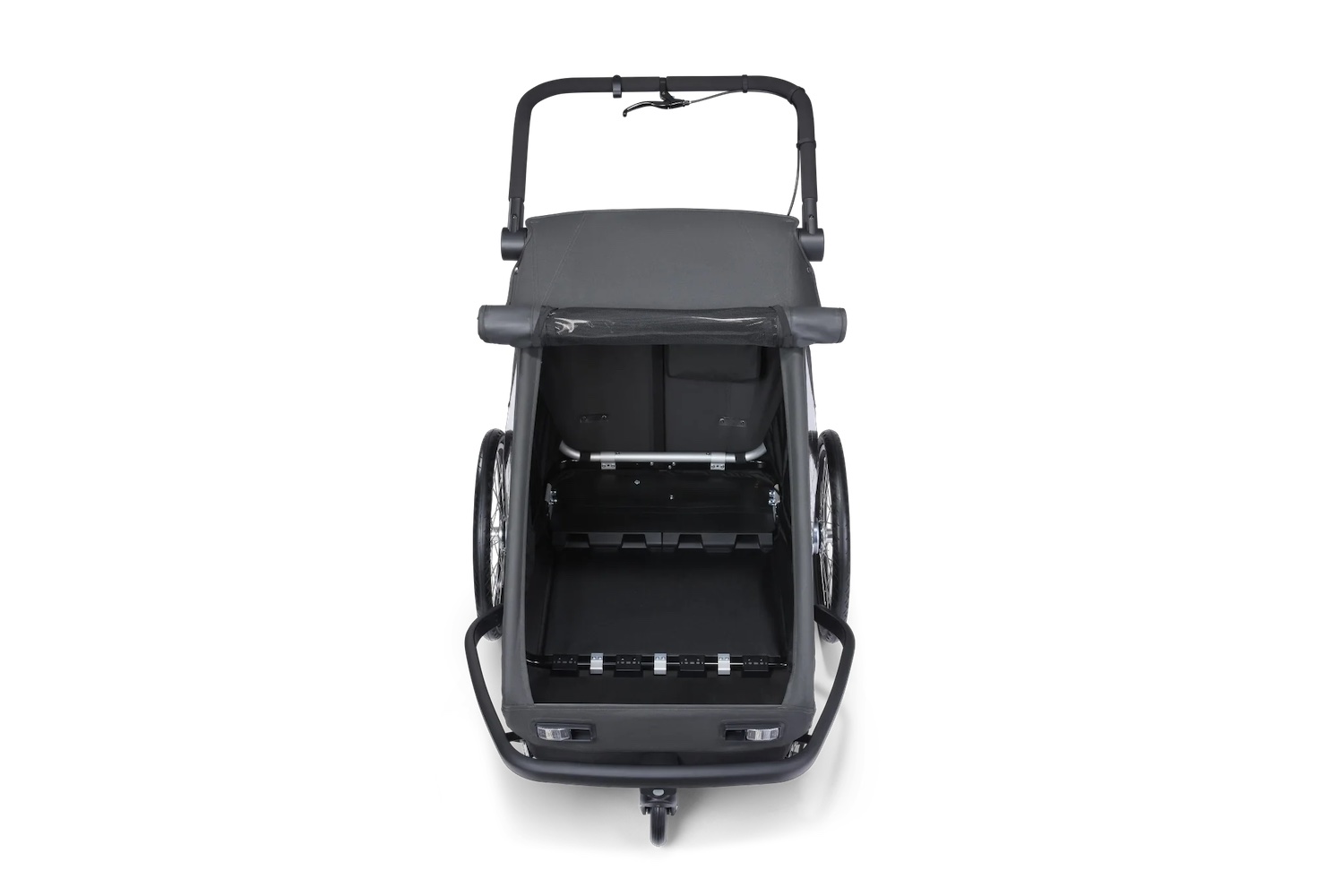 - Platz für zwei frei kombinierbare, individuell ausgewählte Module: für den Transport von einem oder zwei Kindern (ideal auch als Zwillingswagen), Hunden, Kind + Hund, Kind + Gepäck, Hund + Gepäck oder einfach nur Gepäck