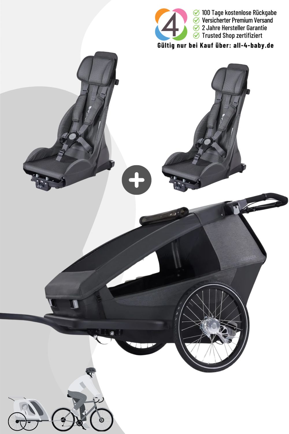 - Croozer Yuuna + 2 Premiumsitze für autofreies Leben mit Kind, Hund, Gepäck - Croozer Yuuna + 2 Premium Seate bundle for car-free life with kids, dogs, luggage