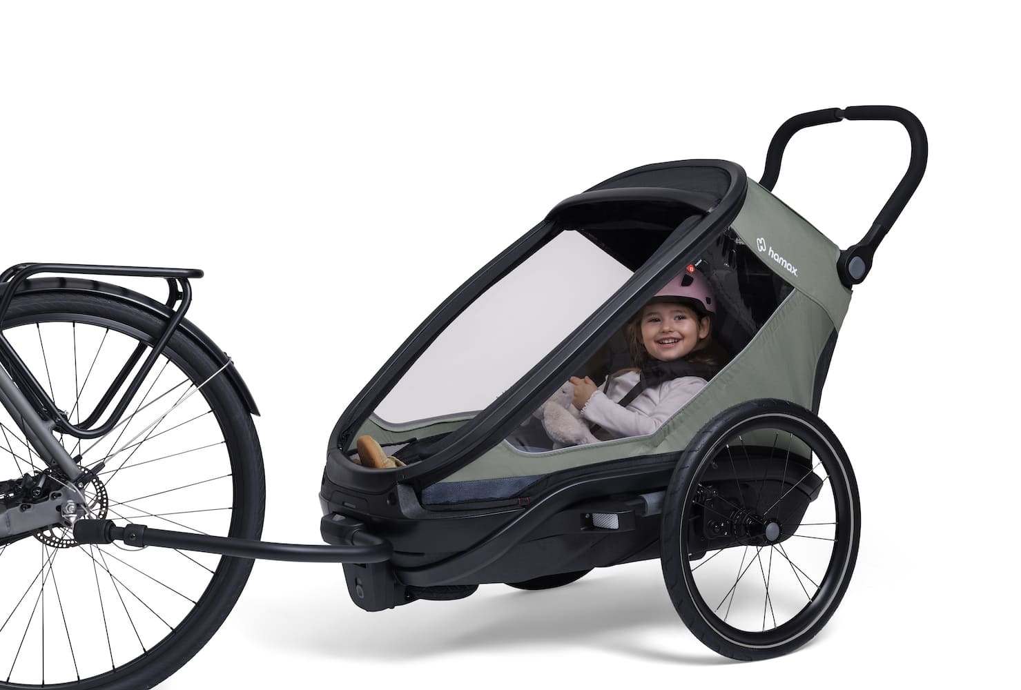 - Der bisher komfortabelste und geräumigste Einsitzer-Anhänger von Hamax – the most comfortable and spacious one-seater trailer from Hamax