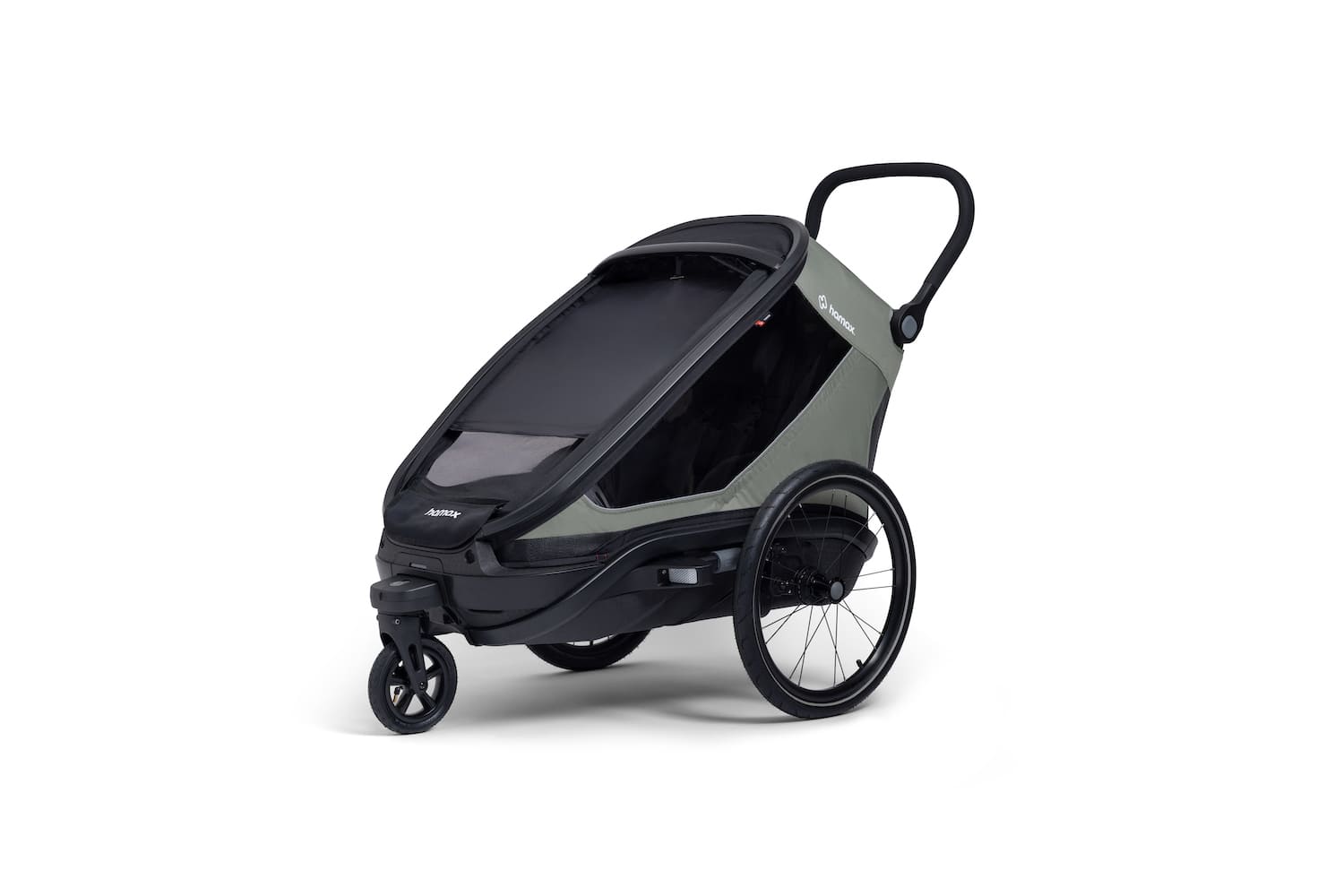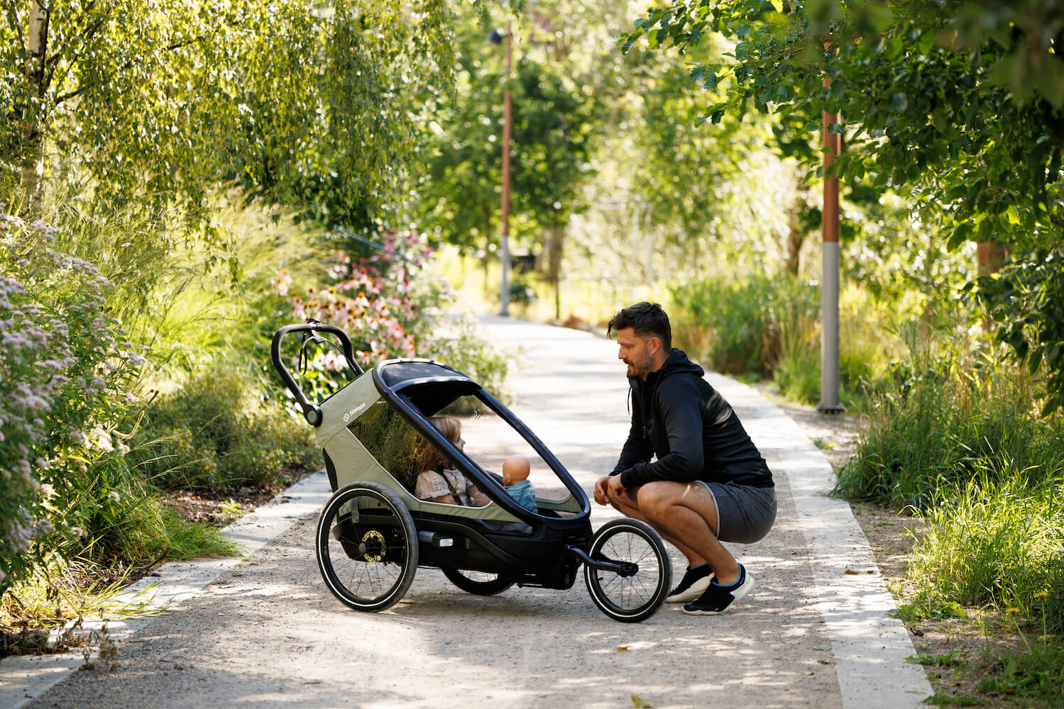 Praktisch im Alltag: Das Buggyrad lässt sich clever unter dem Anhänger verstauen, sodass ihr in Sekunden vom Buggy- in den Fahrradmodus wechseln könnt. Der austauschbare Außenstoff verlängert die Lebensdauer des Anhängers und ermöglicht euch bei Bedarf einen frischen Look, ohne das ganze Produkt ersetzen zu müssen.
