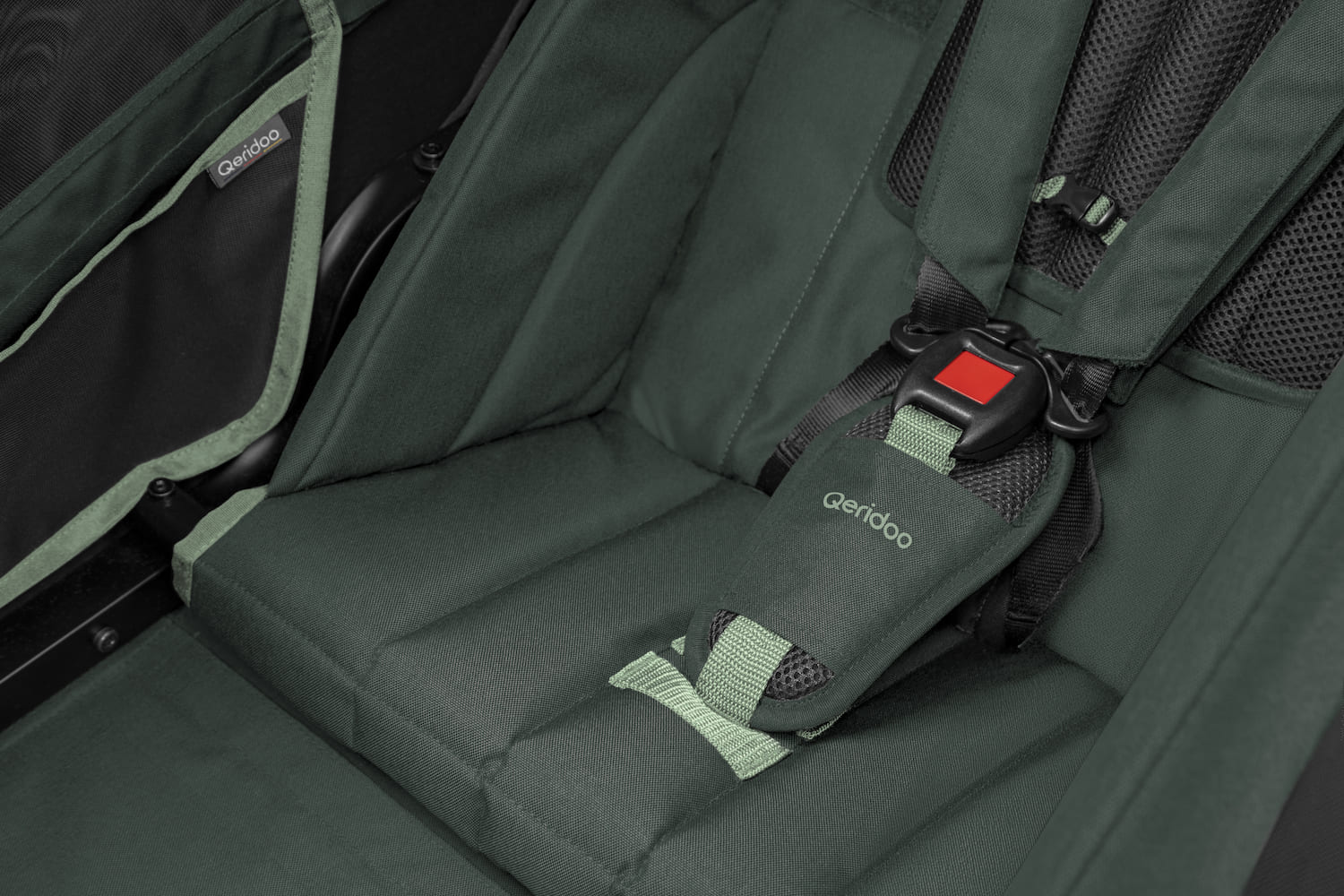 Nichts ist euch wichtiger als der Schutz eures Kindes – der Qeridoo Kidgoo 1 gibt euch diesen Frieden mit höchsten Sicherheitsstandards. Er erfüllt die Normen EN 15918:2011 + A2:2017 und EN 1888-1:2018 + A1:2022 (entwickelt auf Basis ASTM F1975-2015), sodass ihr sorgenfrei unterwegs seid. Der verstärkte Aluminiumrahmen mit Bodenschutz und Aufprallschutz an Seiten und Heck fängt Stöße ab, während patentierte Kopfprotektoren und reflektierende Radabweiser euren Kleinen zusätzlich absichern.