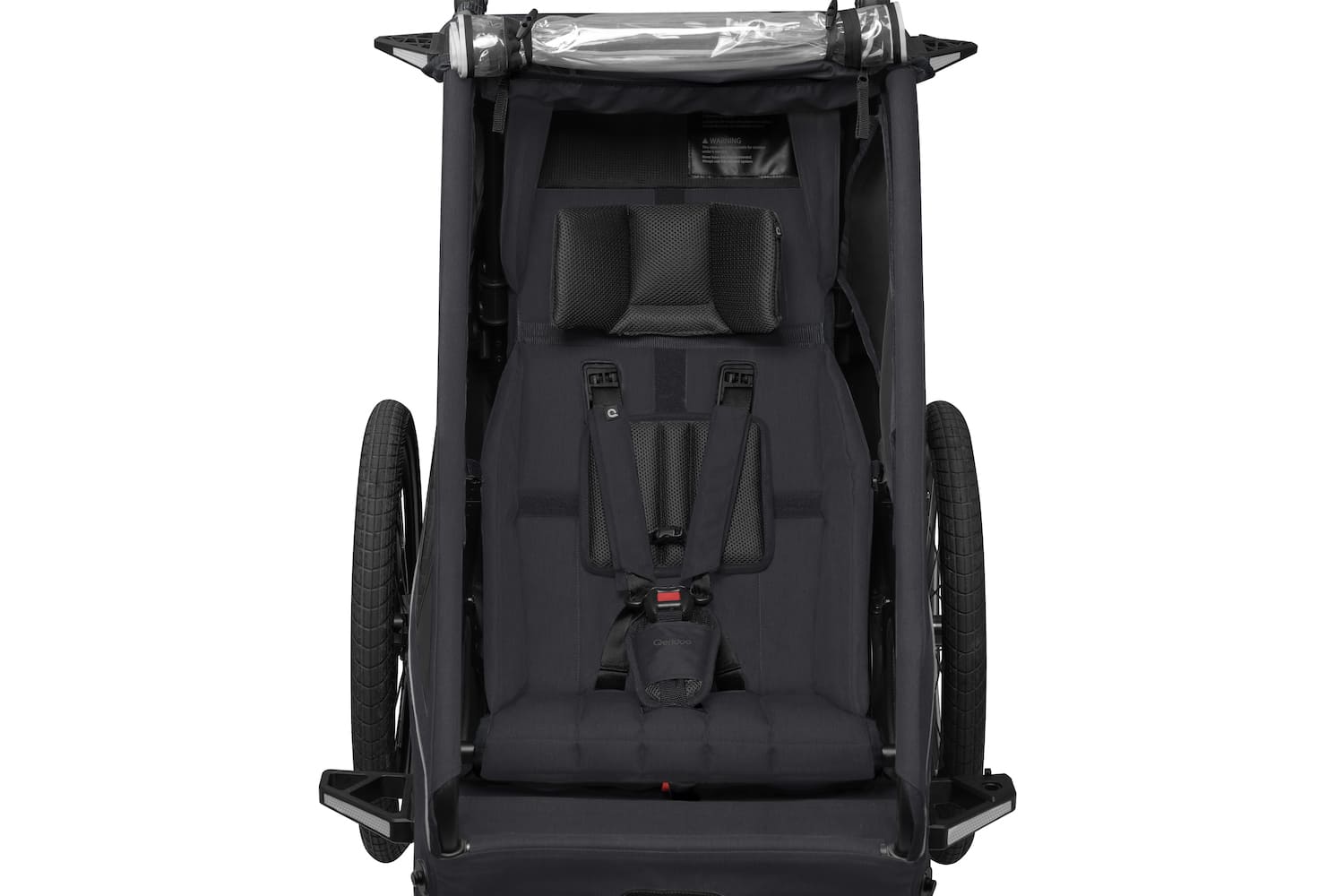 - Robuste Radabweiser schützen den Anhänger vor seitlichen Kollisionen mit Hindernissen wie Bordsteinen oder Pfosten und erhöhen so die Sicherheit deines Kindes