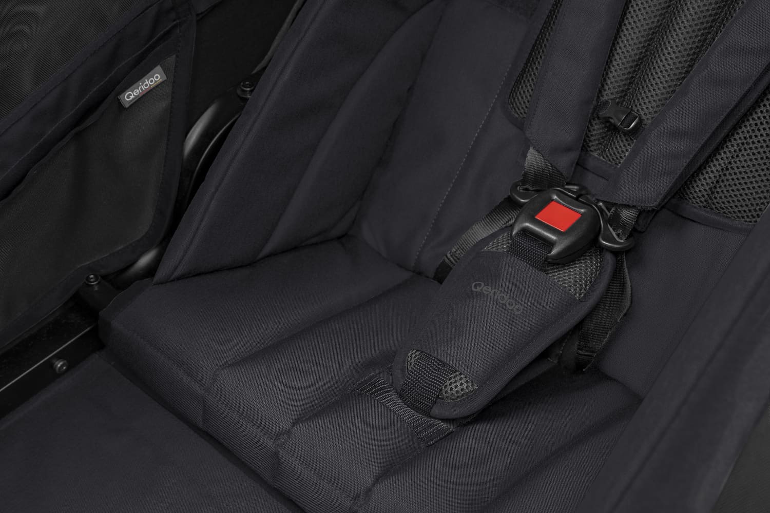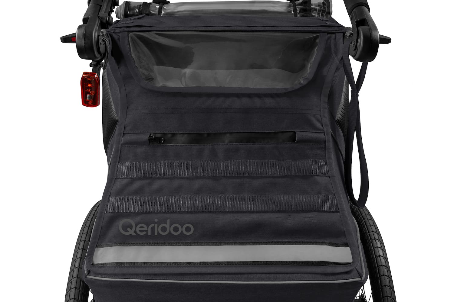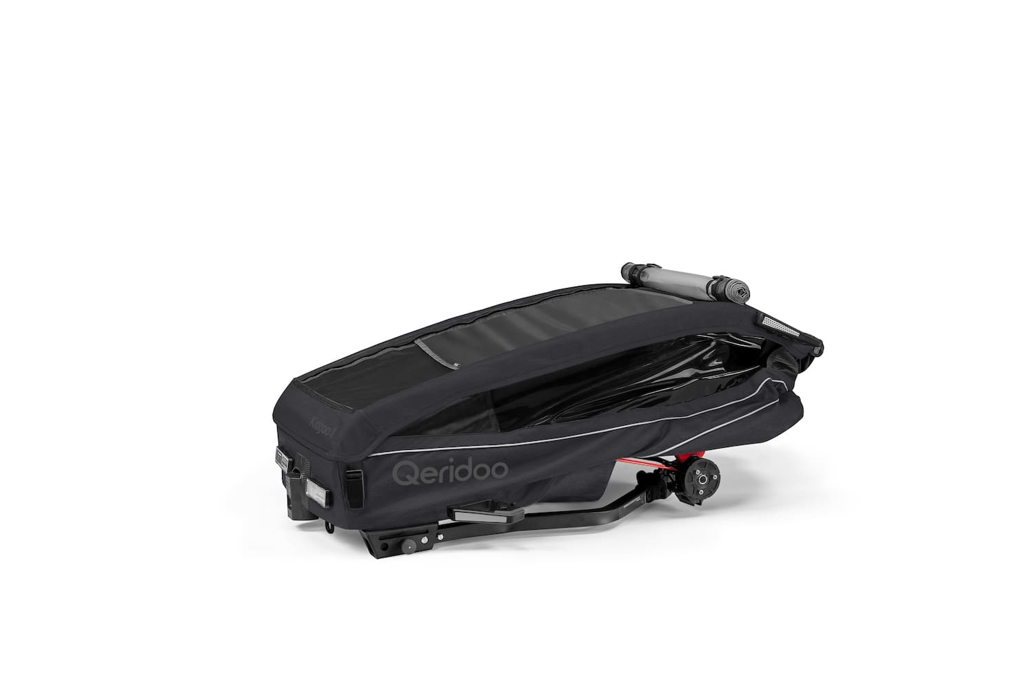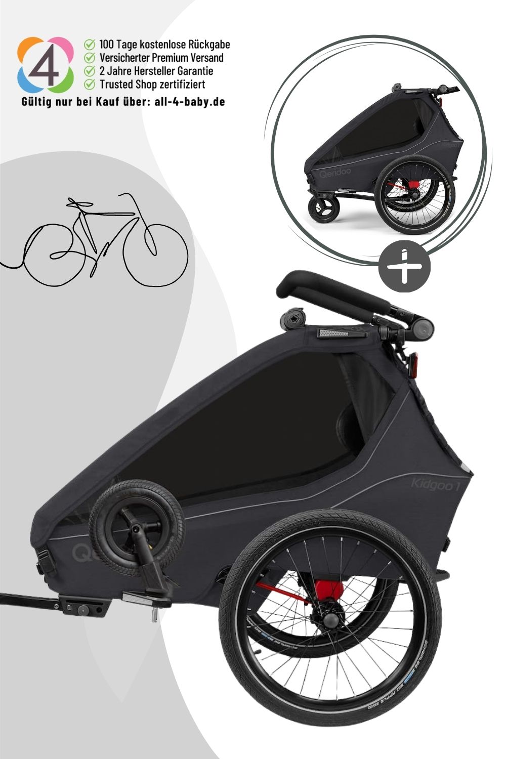 - Zulässiges Gesamtgewicht (Qeridoo + Kind + Gepäck): 50 kg
