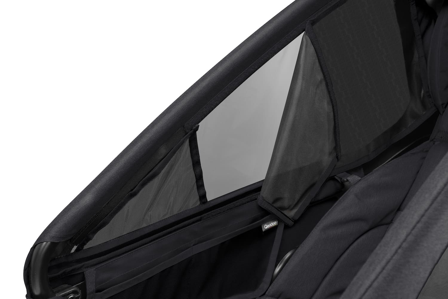 - Abnehmbarer, seitlicher Sonnenschutz mit Klett in der Kabine