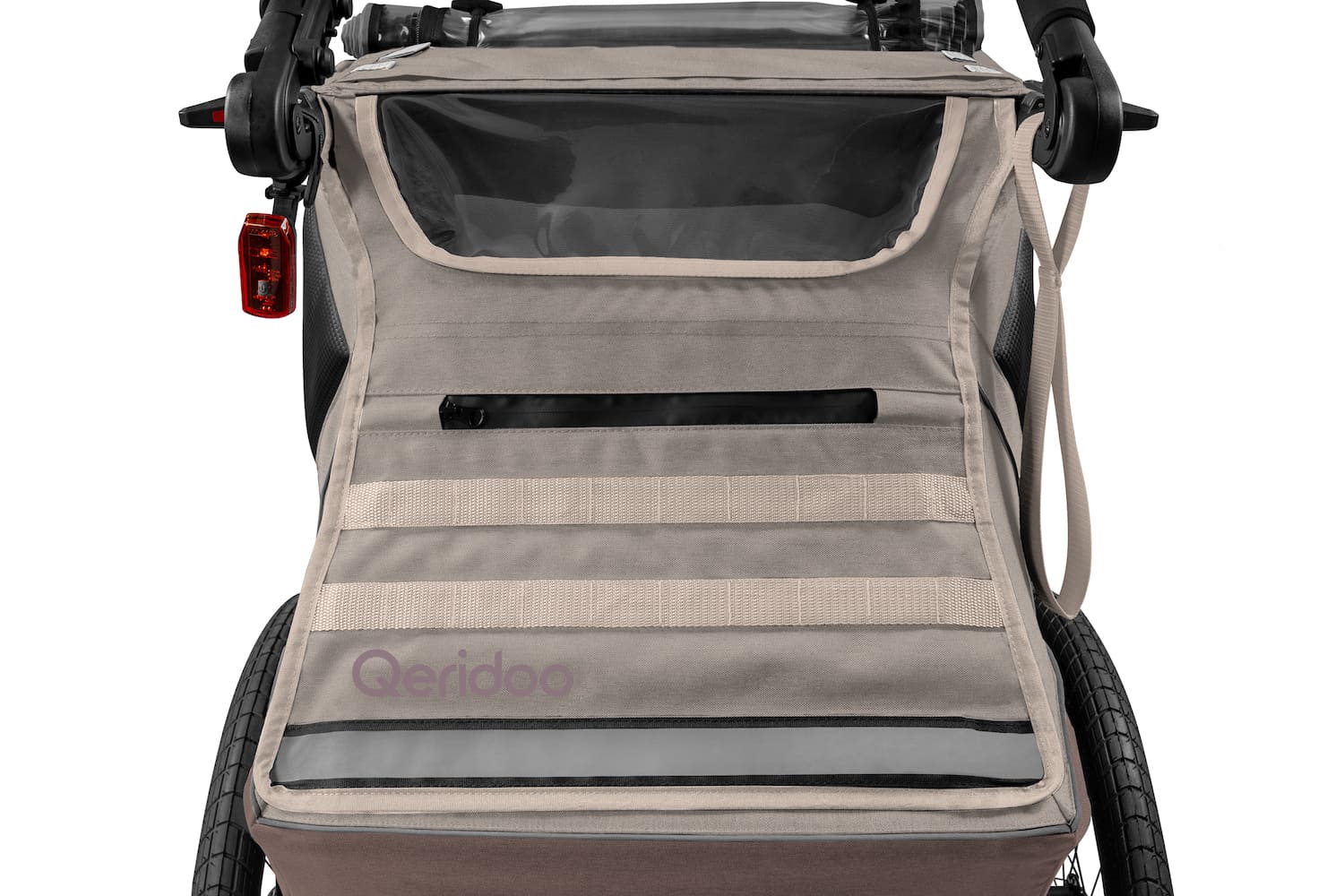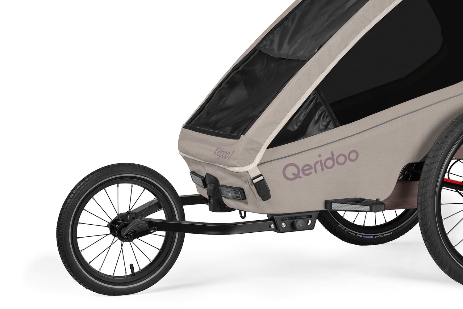 - Zulässiges Gesamtgewicht (Qeridoo + Kind + Gepäck): 50 kg