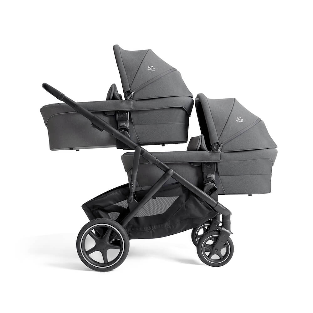 - Erweiterung zum Zwillingswagen mit zweiter Babywanne – Expansion to twin stroller with second carrycot