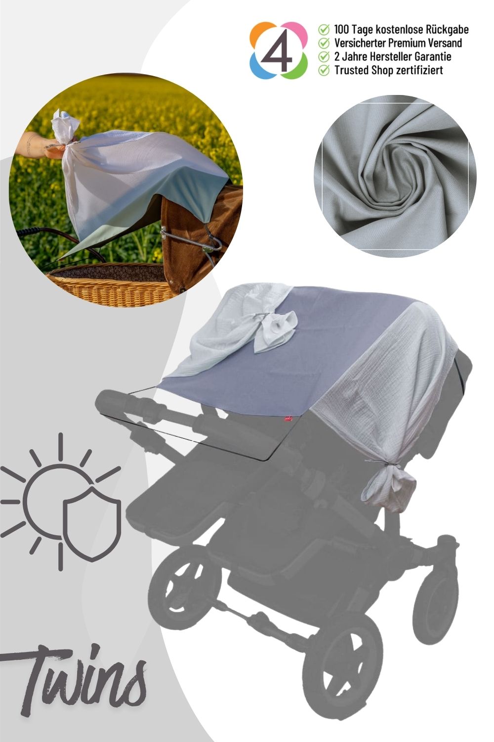 Levily Sonnenschutzsegel Twins – Zuverlässiger Sonnenschutz für Zwillingskinderwagen