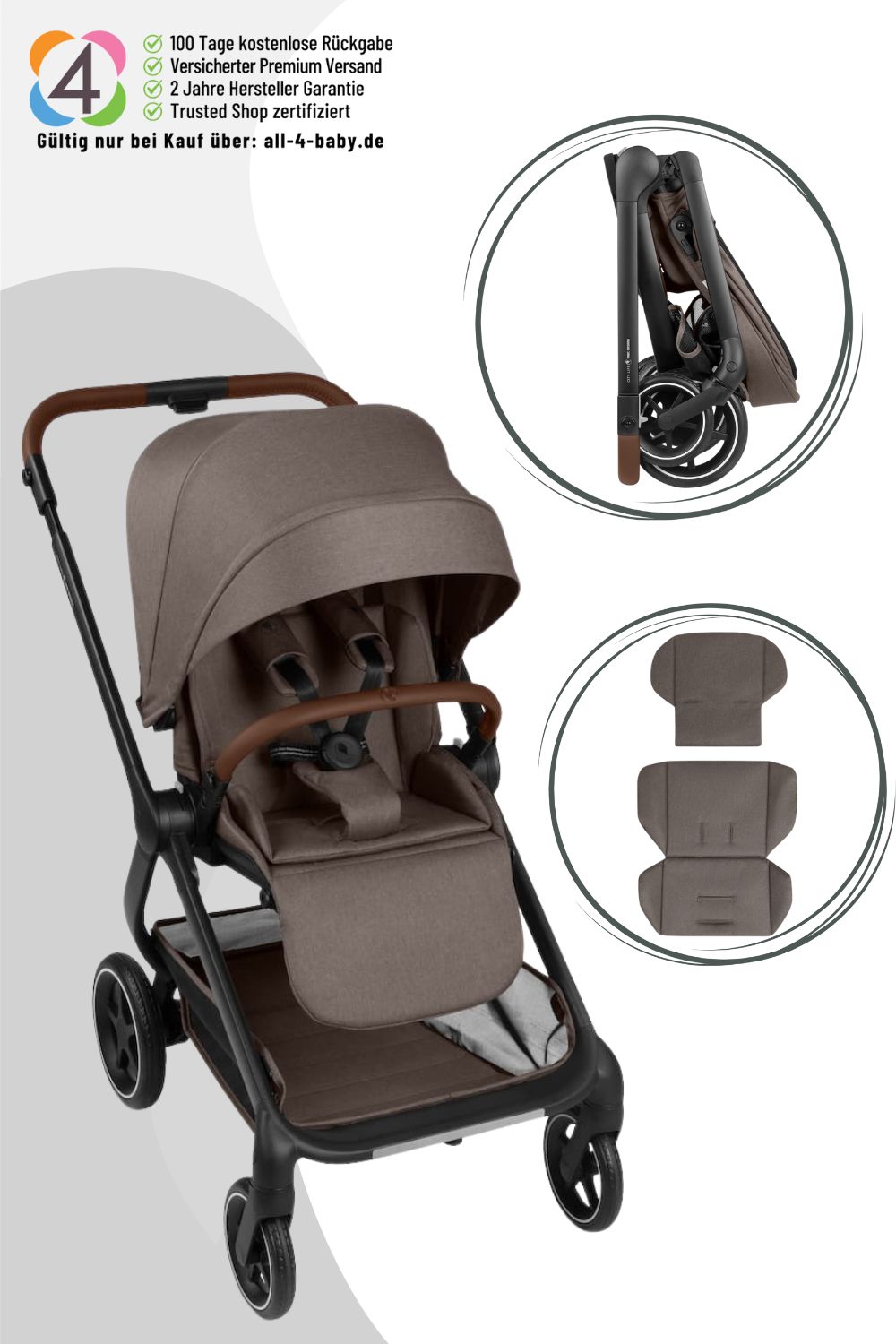 Der abnehmbare Textilbezug aus 100% Polyester lässt sich bei 30°C waschen – Flecken und Abnutzung gehören der Vergangenheit an. So bleibt euer City Life stets wie neu und bereit für den nächsten Spaziergang!