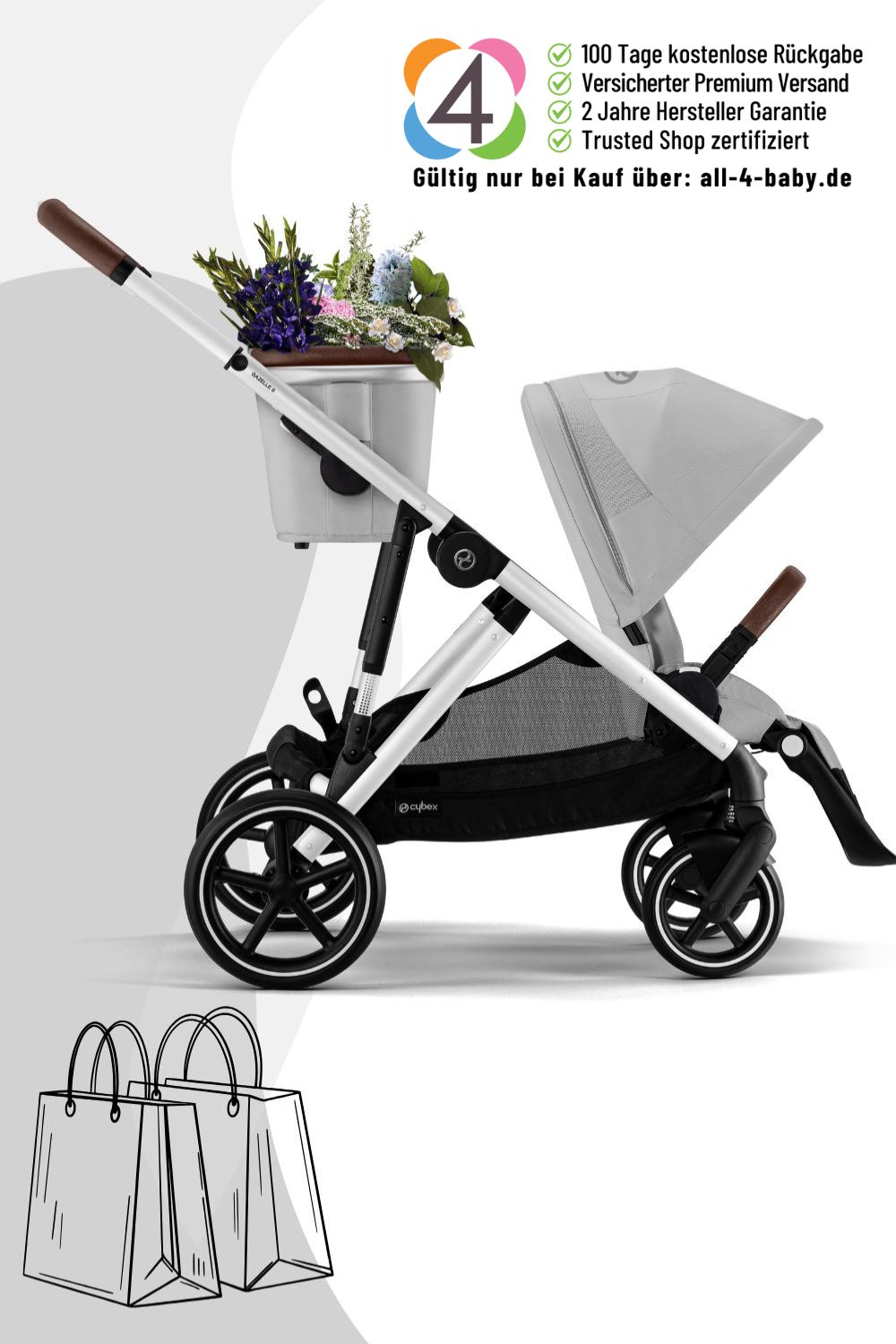 Hier kann der abnehmbare Einkaufskorb durch eine separat erhältliche zweite Sitzeinheit, eine weitere Babywanne oder eine zusätzliche Babyschale ersetzt werden. Diese Flexibilität ermöglicht es Euch, die Konfiguration des Kinderwagens jederzeit an die momentanen Bedürfnisse Eurer Familie anzupassen.