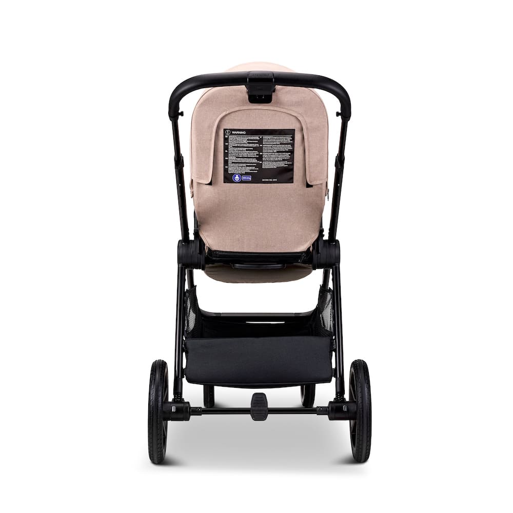 Hochwertige, regen- und schmutzabweisende Stoffe machen den Kinderwagen langlebig und pflegeleicht. Der Schieber ist mit strapazierfähigem, rutschfestem und antibakteriellem veganem Leder bezogen. Der veredelte Rahmen ist stabil, leicht zu reinigen und optisch zeitlos elegant.