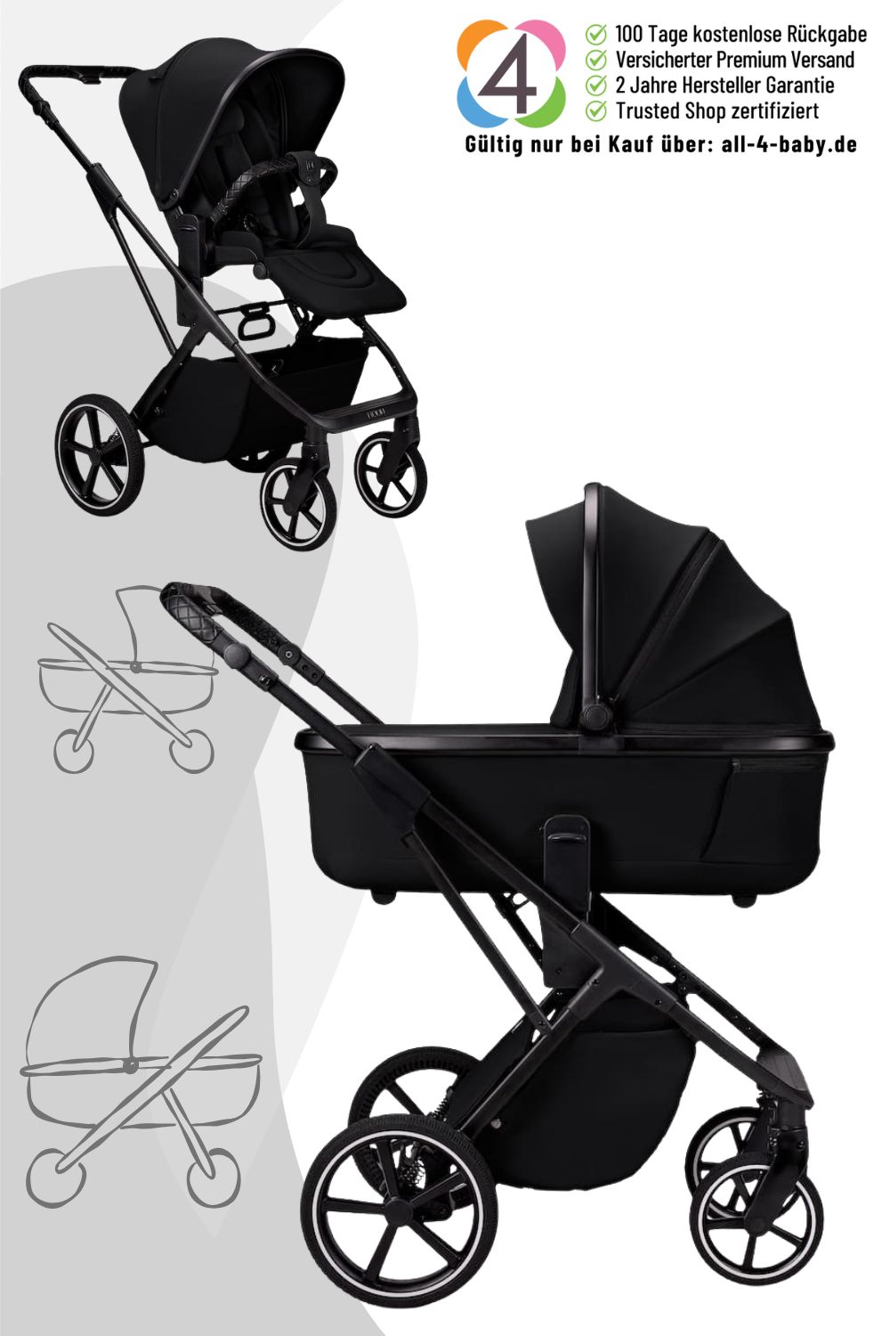 - Adapterlose Höhenverstellung passt Wanne und Sitz nahtlos an den Rahmen an - Adapter-free height adjustment seamlessly matches carrycot and seat to frame