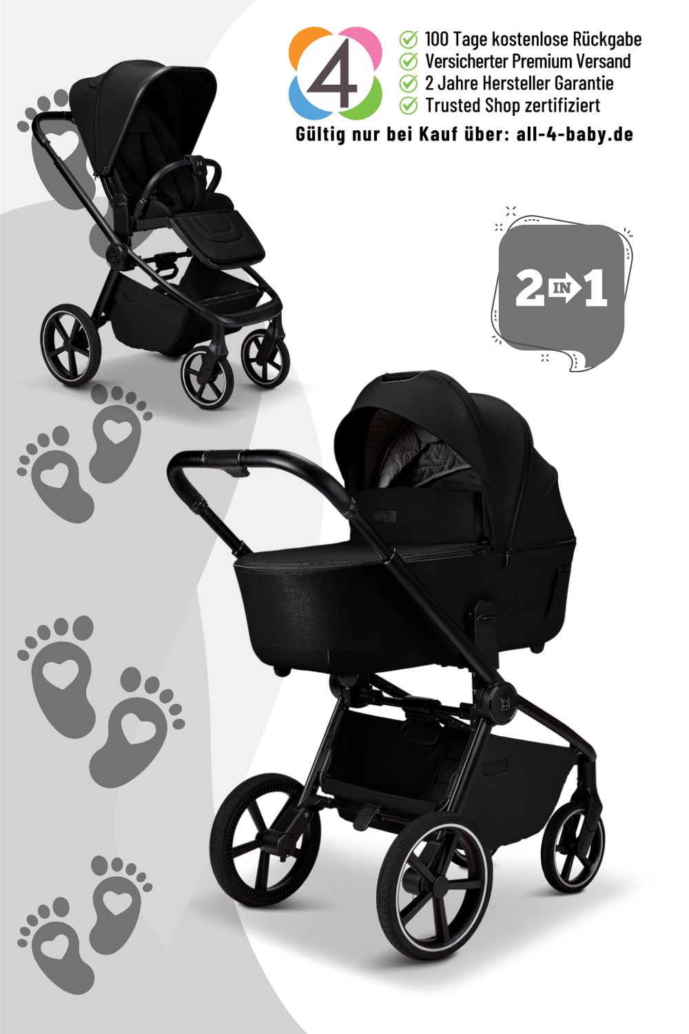 Dieser moderne Kinderwagen vereint elegantes Design, hochwertige Materialien und erstklassigen Fahrkomfort – perfekt für Euch und Eure kleinen Abenteurer.