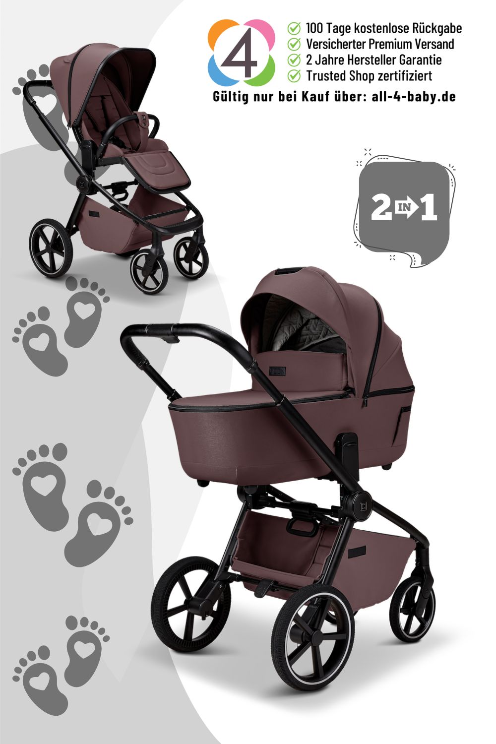 Dieser moderne Kinderwagen vereint elegantes Design, hochwertige Materialien und erstklassigen Fahrkomfort – perfekt für Euch und Eure kleinen Abenteurer.