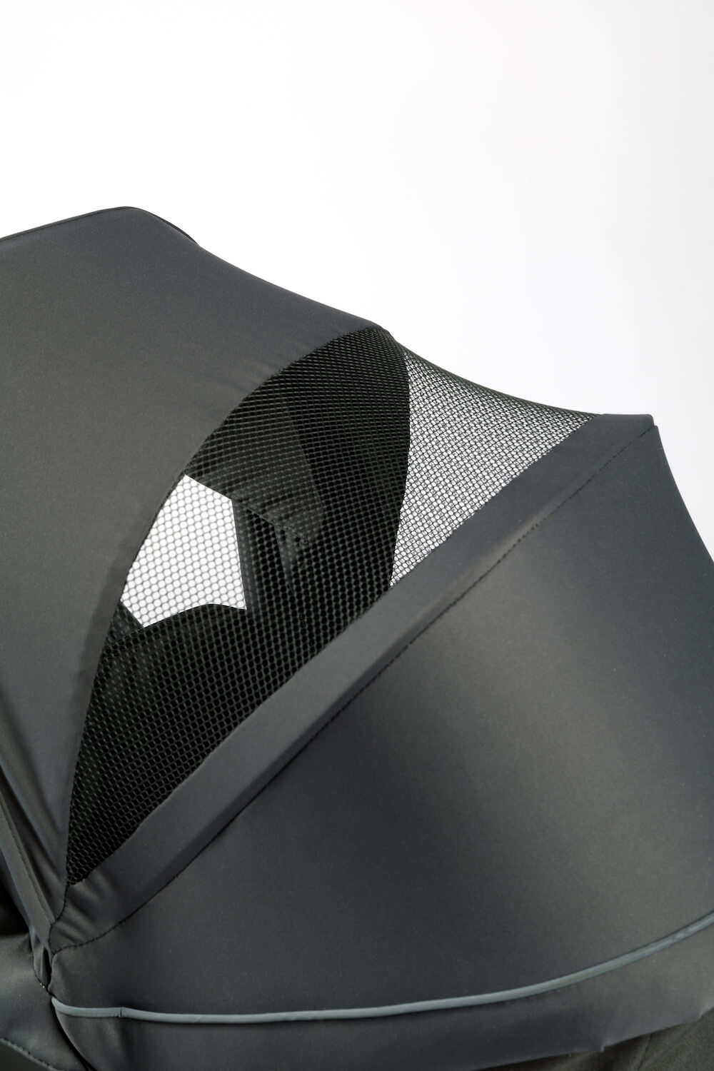 Das große Verdeck mit Lüftungsoptionen bietet zuverlässigen UV-Schutz und schafft ein angenehmes Klima, selbst an warmen Tagen. Schmutz- und wasserabweisende Materialien mit UV-Schutz 50+ machen den tfk pro zusätzlich pflegeleicht und robust – ideal für euren aktiven Alltag bei jedem Wetter.