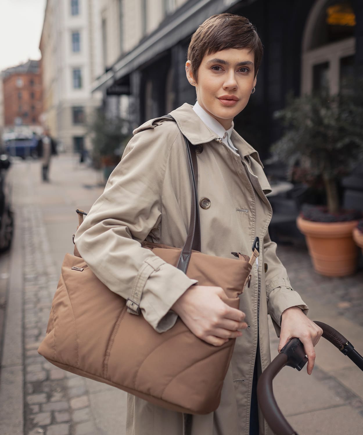 Ich denke an Euren Alltag – ein kompakter Faltmechanismus, praktische Memory-Tasten, eine fußbetriebene Bremse, reflektierende Elemente und ein liebevoll abgestimmtes Zubehörset: Beindecke, Matratze, Regenschutz, Wickeltasche und Adapter für Babyschalen von Cybex oder Maxi-Cosi.